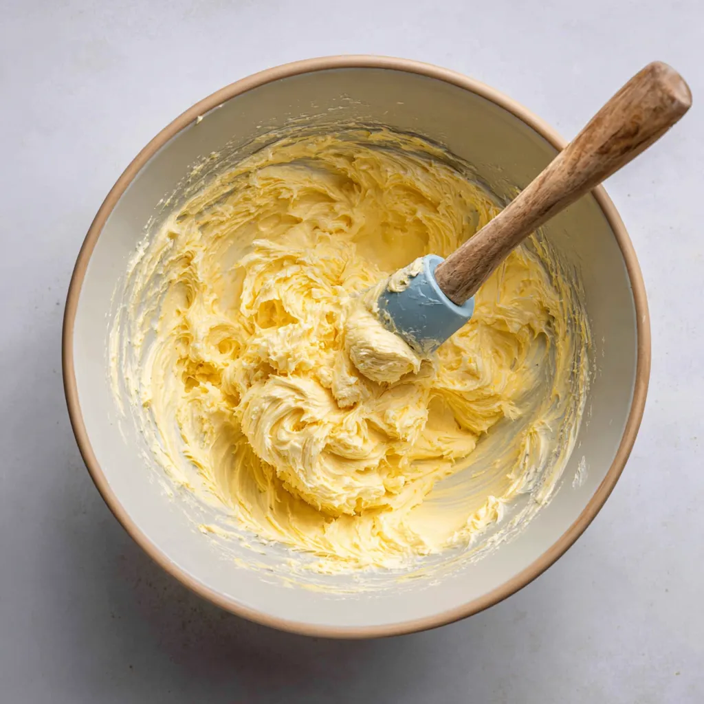 Cream the butter and sugar together until light and fluffy about 2–3 minutes. Add the vanilla and almond extracts and mix again.