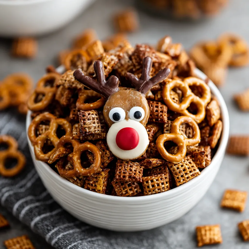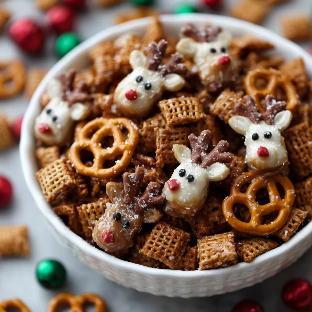 ✨ Serve Caramel Pretzel Reindeer Chow in: