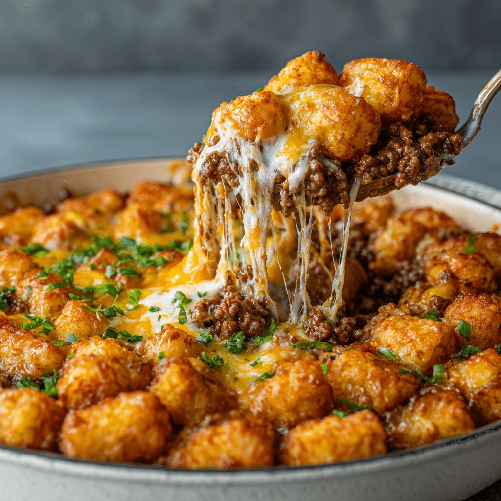 I bake the casserole until the tots turn golden and crisp and the filling bubbles happily underneath. Right before serving, I let it rest for a few minutes so the layers settle and the flavors hug each other.