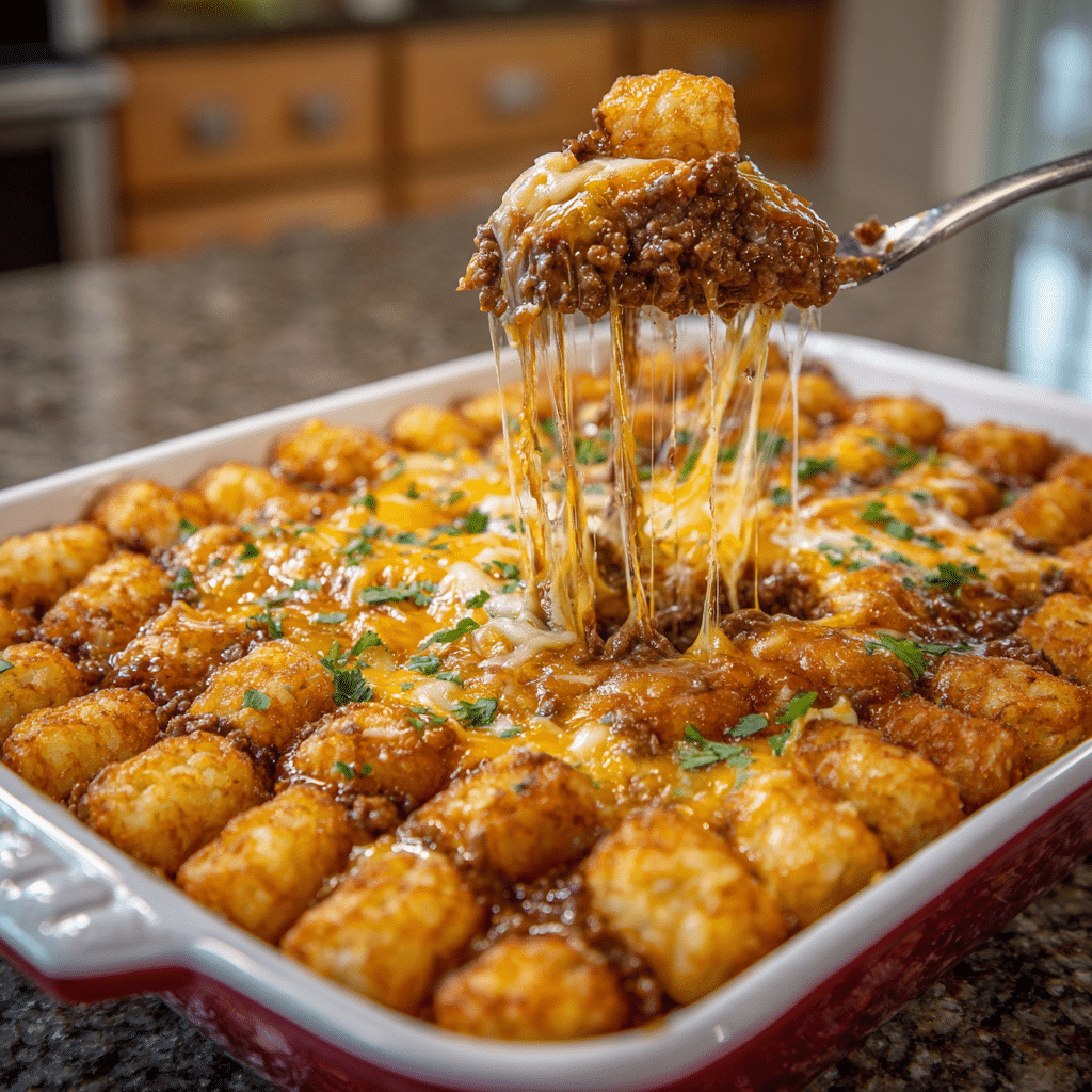 When I make it ahead, I assemble everything except the tater tots, cover it tightly, and refrigerate. When I’m ready to bake, I add the tots fresh so they stay crispy.