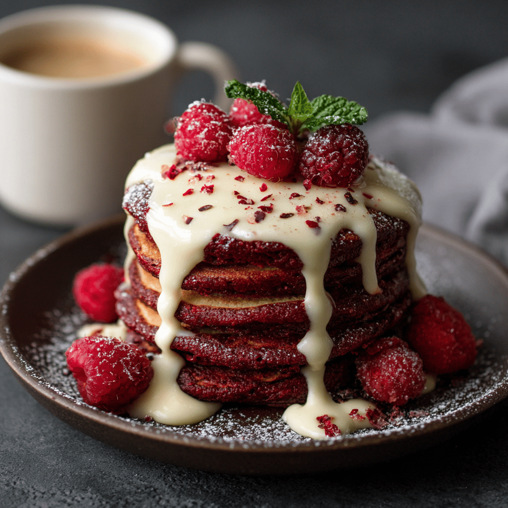 I still remember the first Sunday I served these red velvet pancakes with cream cheese glaze. The kitchen smelled like cocoa and vanilla, the skillet gently sizzled, and everyone lingered at the table a little longer than usual. That’s the magic of red velvet pancakes with cream cheese glaze they invite you to slow down, pour another cup of coffee, and stay.