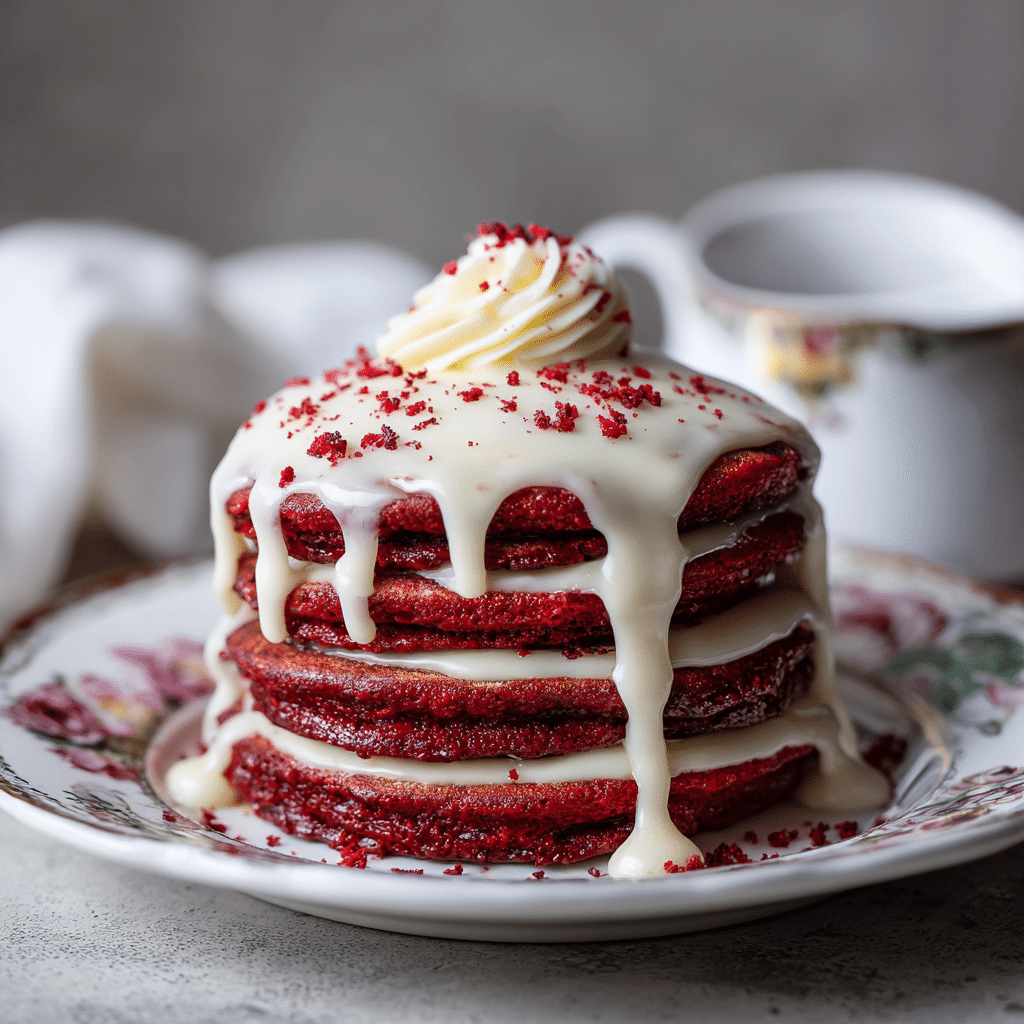 I love how the pancakes stay soft and fluffy inside while holding that deep red color that feels almost magical. I love how the cream cheese glaze melts slowly over the warm pancakes, sinking into every little pocket. Most of all, I love watching faces light up when I set the plate down.
