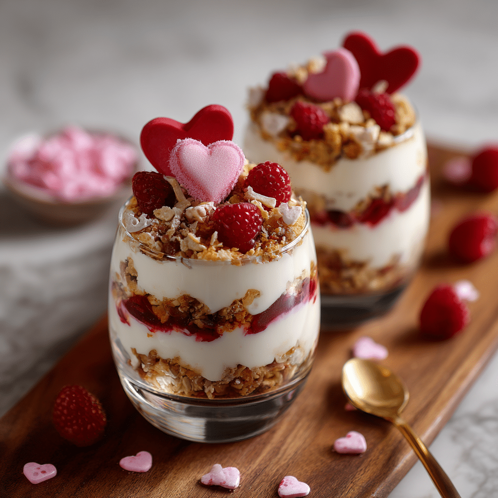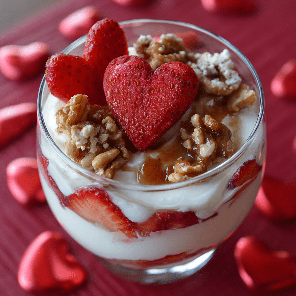 This Vanilla Yogurt Parfait with Valentine Toppings is a sweet, simple way to celebrate love. Creamy vanilla yogurt, crunchy granola, and fresh berries come together in beautiful layers that feel special without being complicated. I top mine with heart-shaped strawberries, raspberries, and a drizzle of honey for a romantic touch. It’s perfect for Valentine’s breakfast, brunch, or a light dessert. I love how nourishing, pretty, and meaningful it feels a reminder that sometimes the simplest recipes carry the most love.